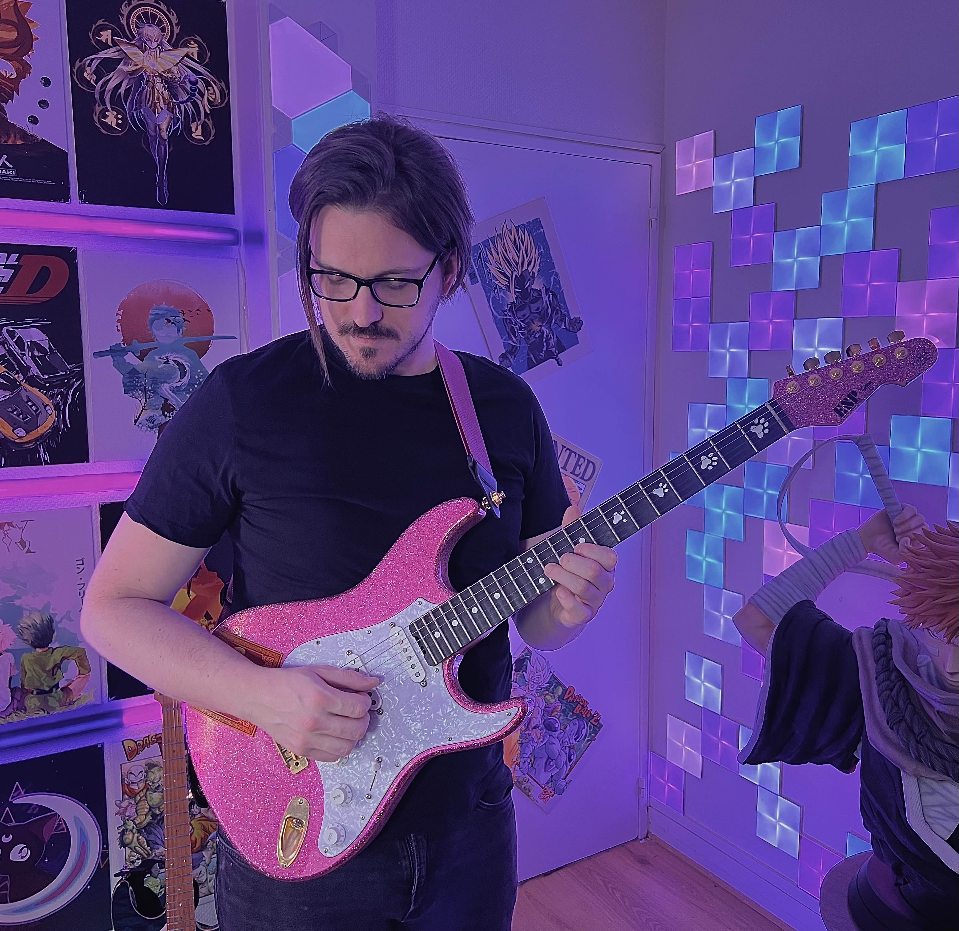 Je m'appelle Guillaume Rabut, aka Shredingue sur les réseaux sociaux, et cela fait plus de 22 ans que je pratique la guitare, je suis spécialisé dans le shred et tout ce qui touche à la technique instrumentale, plus précisément sur la guitare électrique.